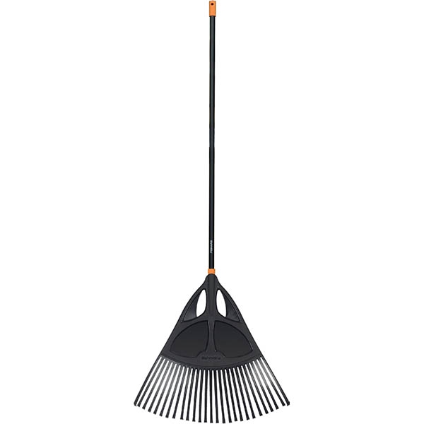 Η τσουγκράνα φύλλων Solid XL της Fiskars είναι το βασικό εργαλείο για κάθε φθινοπωρινή εργασία καθαρισμού, με ενσωματωμένο άξονα αλουμινίου και ελαφριά ισχυρή πλαστική κεφαλή με εύκαμπτα δόντια.